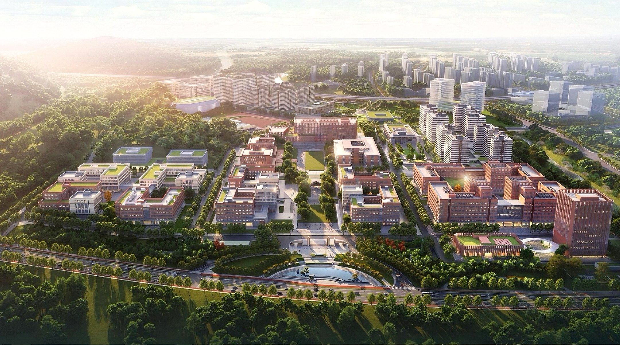 華西樂城研究院西南側(cè)入口黃昏半鳥瞰